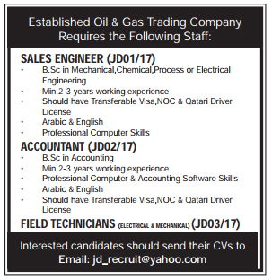 Leading Co, Required the following in Light current & IT Network solutions with Min. 3 years experience. Sales Engineer, Technical ...